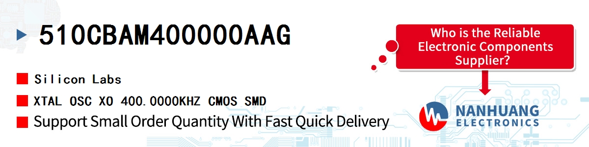 - 510CBAM400000AAG Silicon Labs, XTAL OSC XO 400.0000KHZ CMOS SMD, Crystals, Oscillators, Resonators~Oscillators