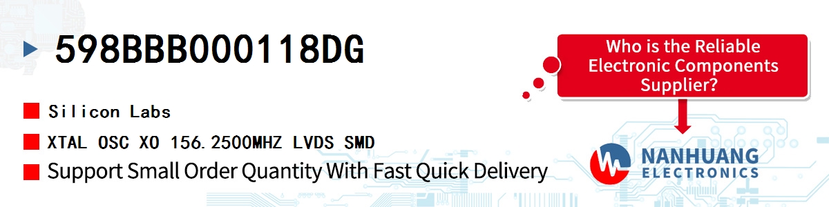 - 598BBB000118DG Silicon Labs, XTAL OSC XO 156.2500MHZ LVDS SMD, Crystals, Oscillators, Resonators~Oscillators