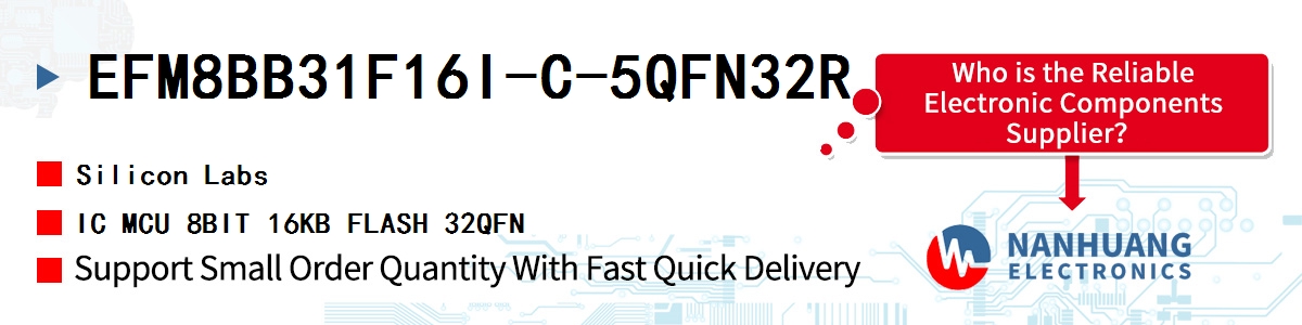 - EFM8BB31F16I-C-5QFN32R Silicon Labs, IC MCU 8BIT 16KB FLASH 32QFN, Integrated Circuits (ICs)~Embedded - Microcontrollers